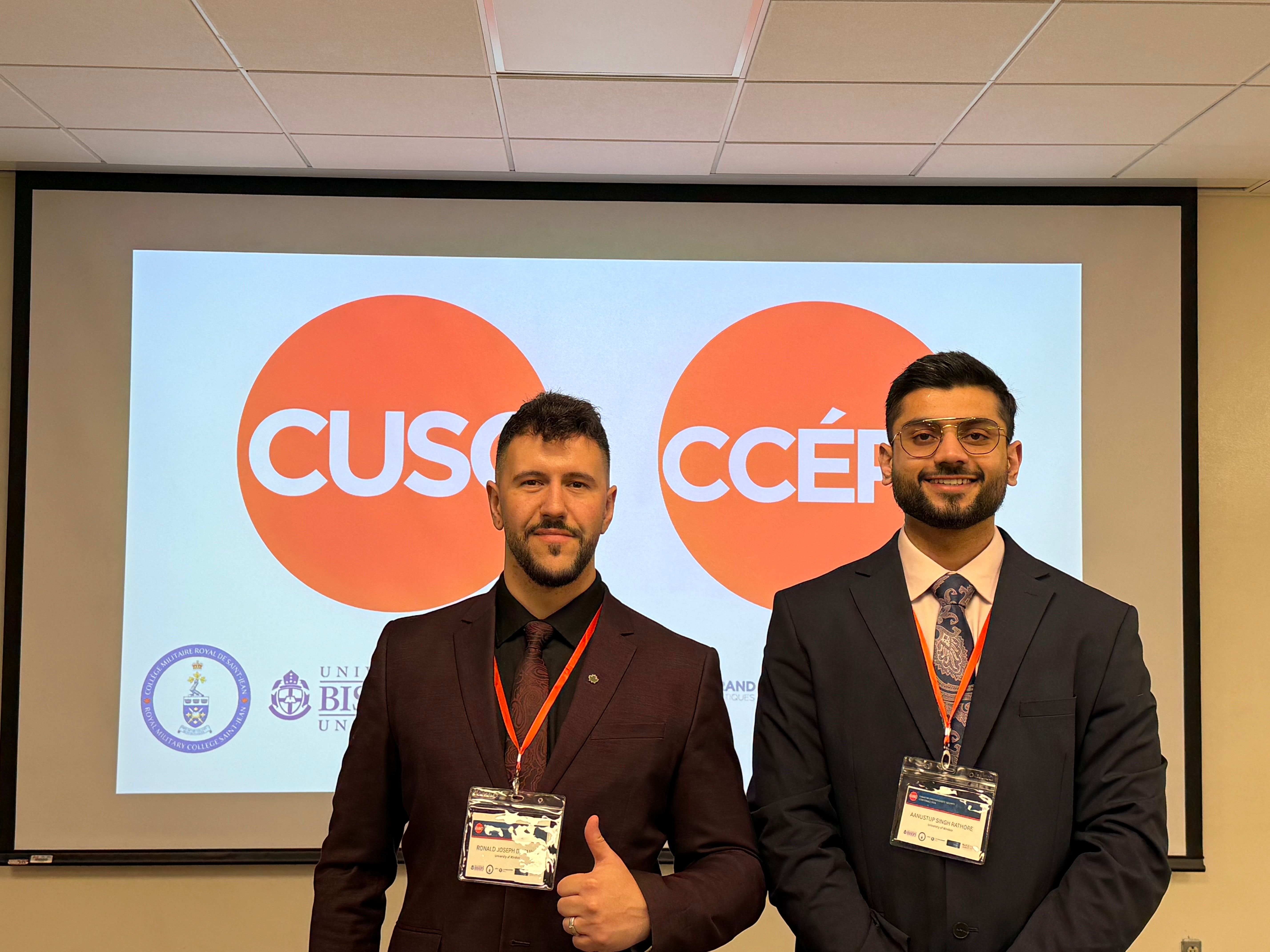 Aanustup Singh Rathore and RJ D’Aguilar recently represented the department at the Canadian Undergraduate Security Conference, held at the Royal Military College in St‑Jean, Quebec. Their original research was accepted through a competitive peer‑review process and were invited to participate as panelists alongside undergraduates from across the country, spanning British Columbia to Nova Scotia.